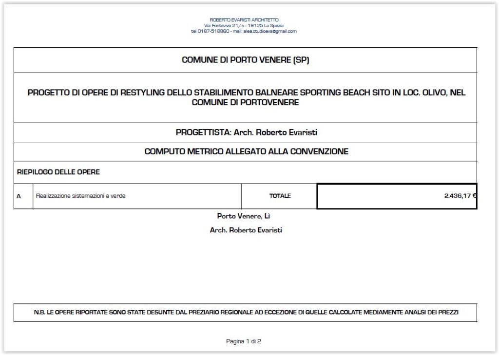 Da uno degli allegati alla convenzione pubblicati ex post, si direbbe che il direttore dei lavori sia l’archistar locale Roberto Evaristi (v. in particolare “Sporting Beach: la grande saga a puntate. Terza puntata. La grande melma“). Colui che era fino a pochi anni fa anche presidente della locale commissione paesaggistica e che si è occupato, mentre era presidente (piccolo conflitto di interesse, ma usciva dalla seduta, eh) e dopo, della sanatoria dello stesso Sporting Beach. Si è occupato anche de Le Terrazze e molto altro qui in zona.